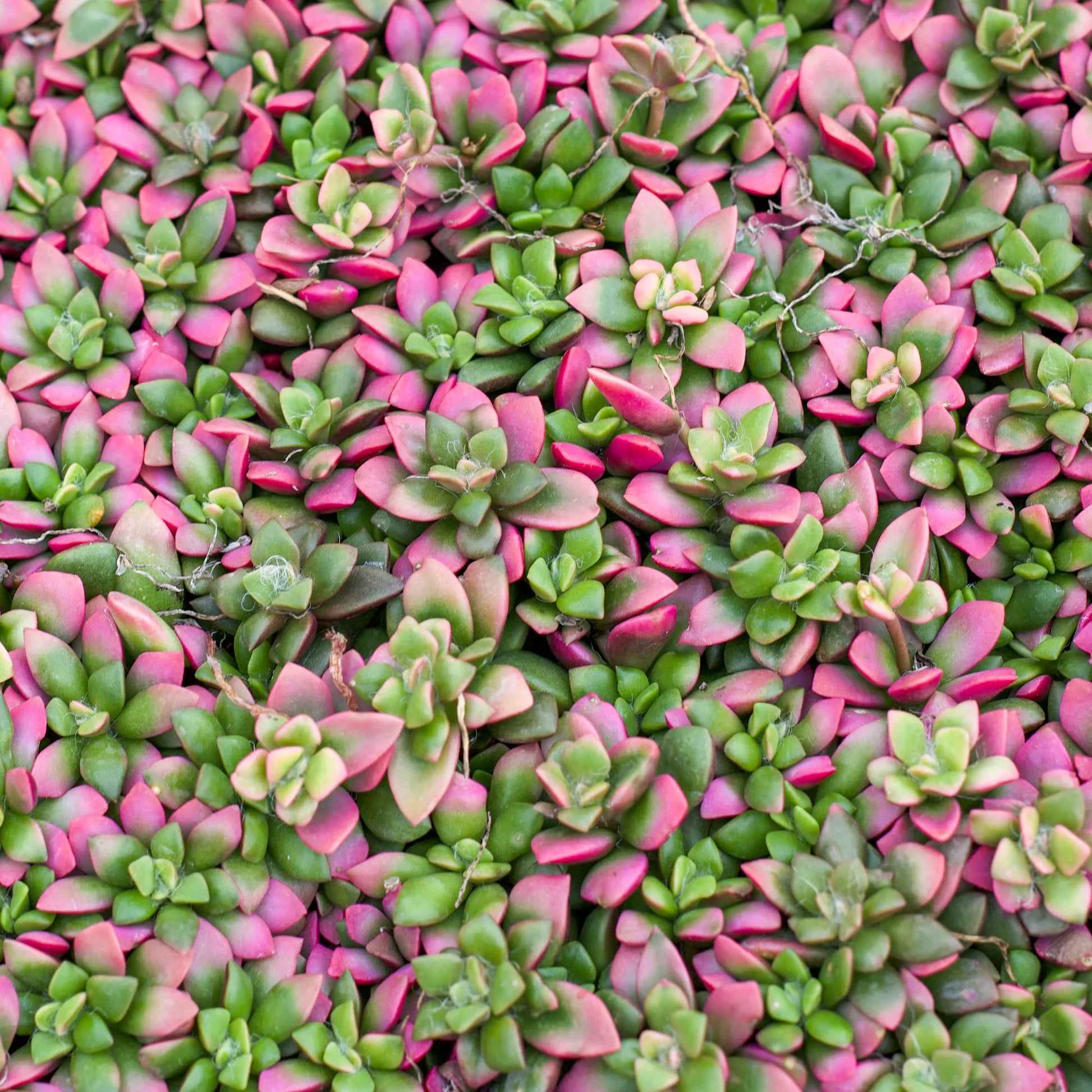 In a rock garden or terrarium, the rosettes will begin to create a dense mat of foliage, but in a pot they will begin to creep over the edges, creating a lovely “spiller” effect. It can be quite a slow grower – though if given the chance, it may begin to develop a caudex, which uniquely resembles a swollen “trunk” where the base of the plant meets the soil. Adding to the already spectacular show put on by its foliage, look for large pink flowers in the summer months, which open during the daytime and close their petals come nightfall.