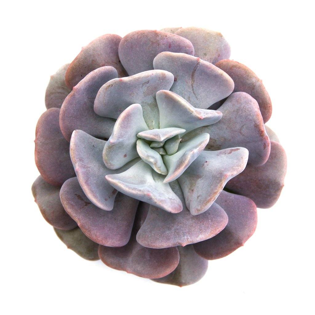 To retain its beautiful coloring 'Cubic Frost™' needs a lot of bright light, which it is able to tolerate well thanks to a thick coating of powdery farina on all of its leaves! Porous soil with excellent drainage, as well as thoroughly watering the soil directly (not into the rosette itself) only once it has had a chance to completely dry, will help stave off issues with rot or pests. Be sure to take extra care to avoid overwatering during the cool winter months, as cold and chronically damp soil can predispose the plant to root rot. Further, be sure to protect this incredible plant’s chubby leaves from frost in the colder winter months!