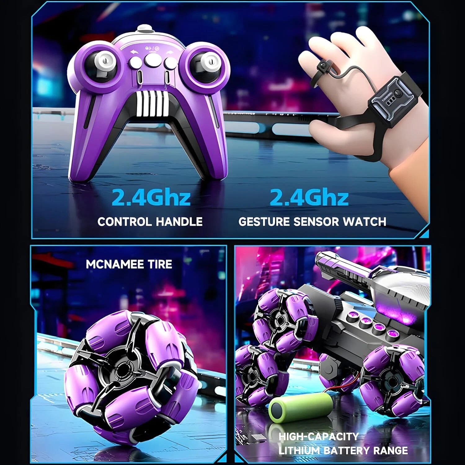 A unique gift for your child! This gesture-sensing stunt remote control car spins freely and remotely fires water bullets. ✅ Say goodbye to mobile games for your child.